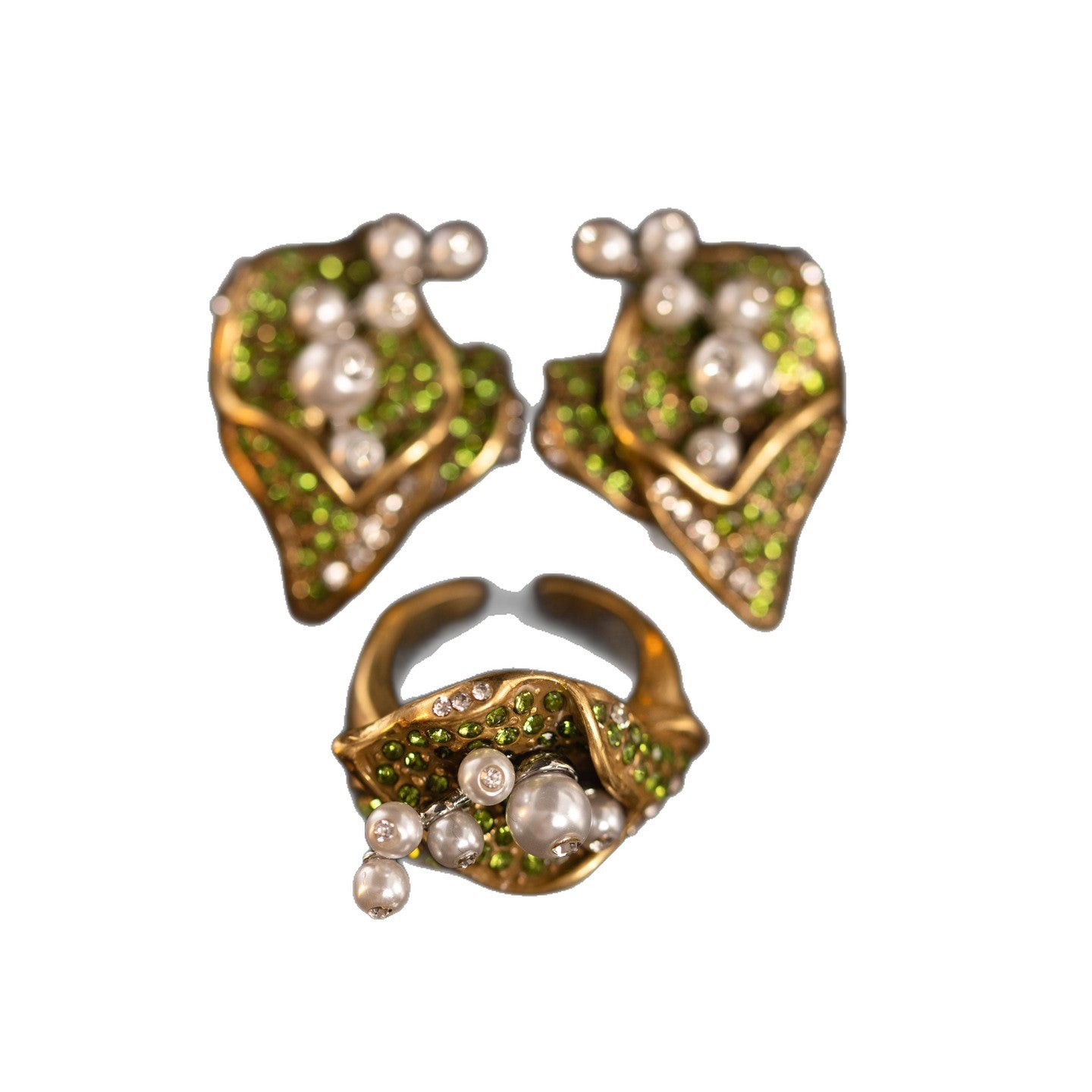 Experience true exclusivity with our Medieval Earrings & Green Diamond Gold Leaf Ring Jewelry Set?aan extraordinary, hot-selling retro-inspired collection for women who appreciate distinctive style and artisanal charm.