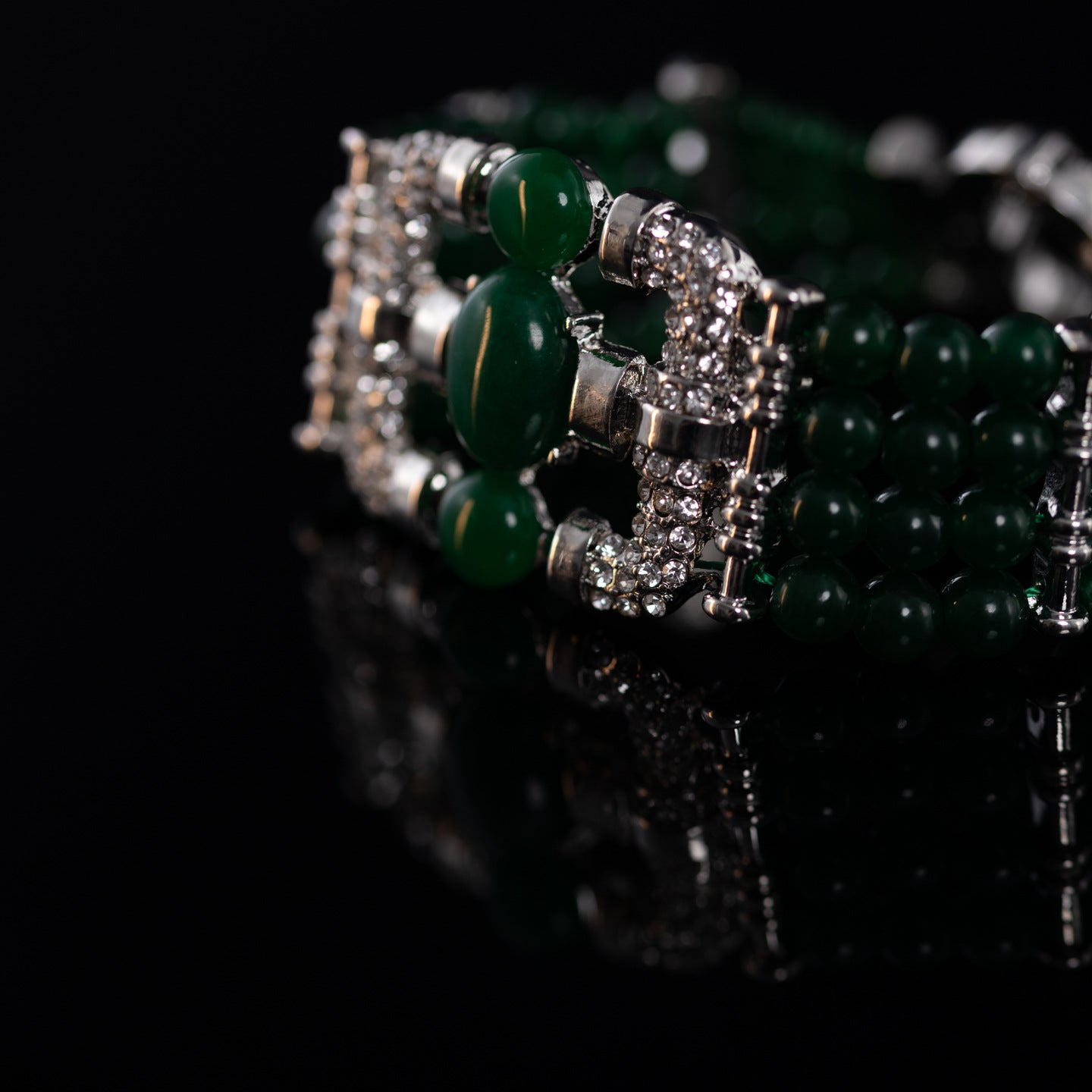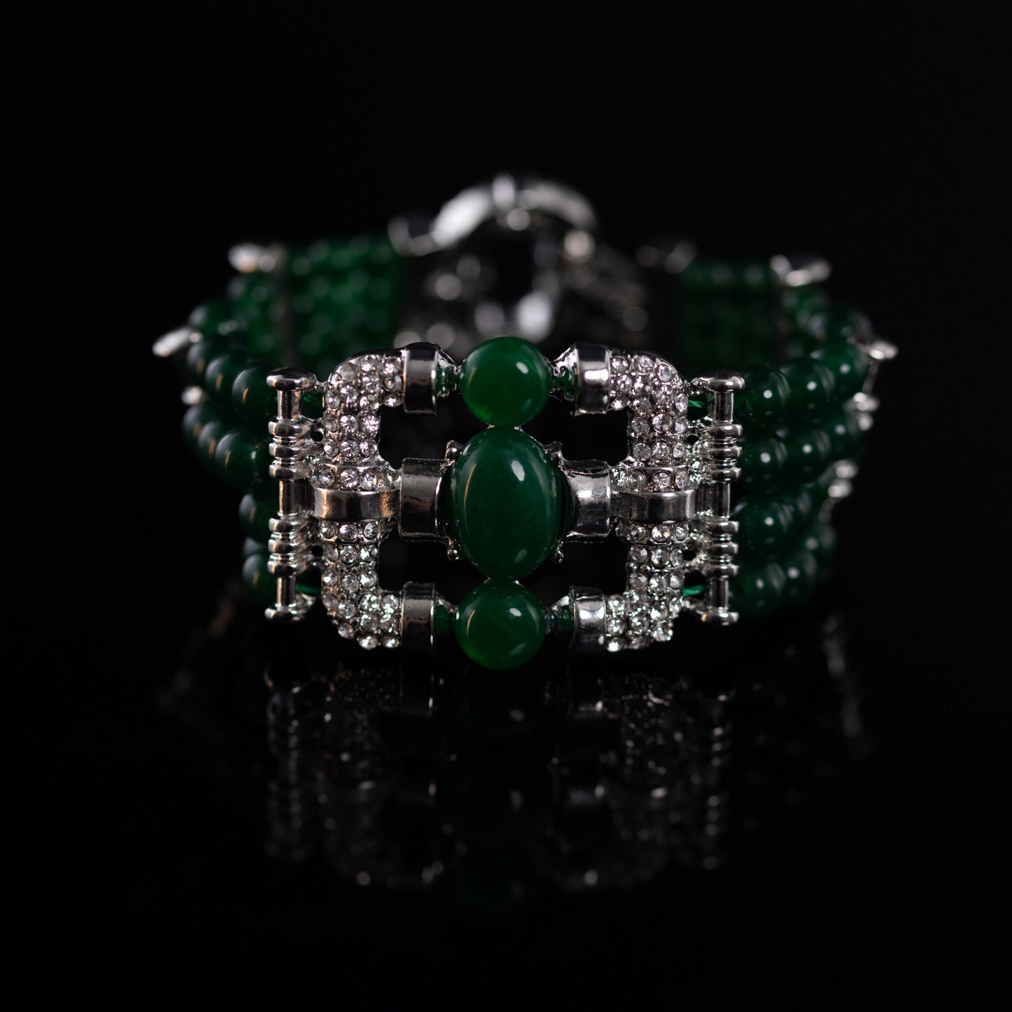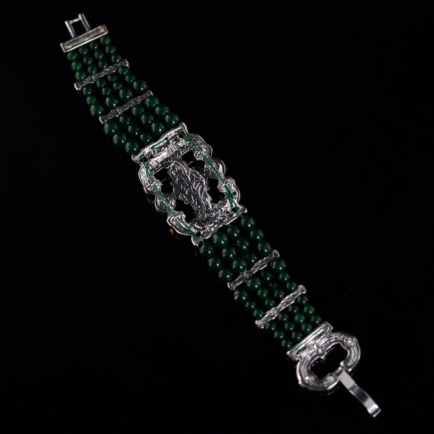 Premium materials set the bracelet apart, beginning with the rich green agate stones that symbolize timeless beauty and serenity. Combined with a durable copper alloy base, this piece radiates both opulence and resilience.