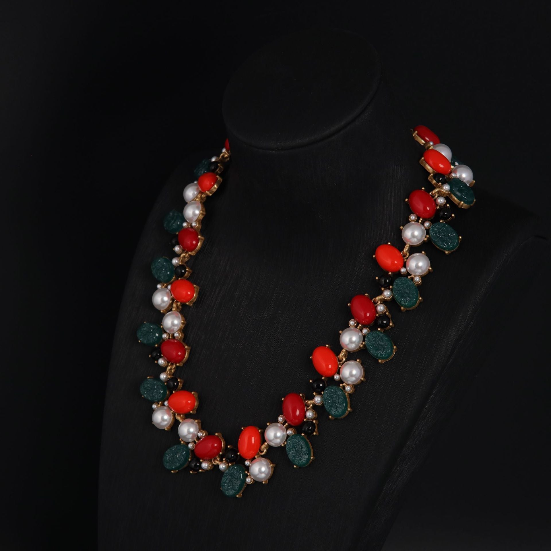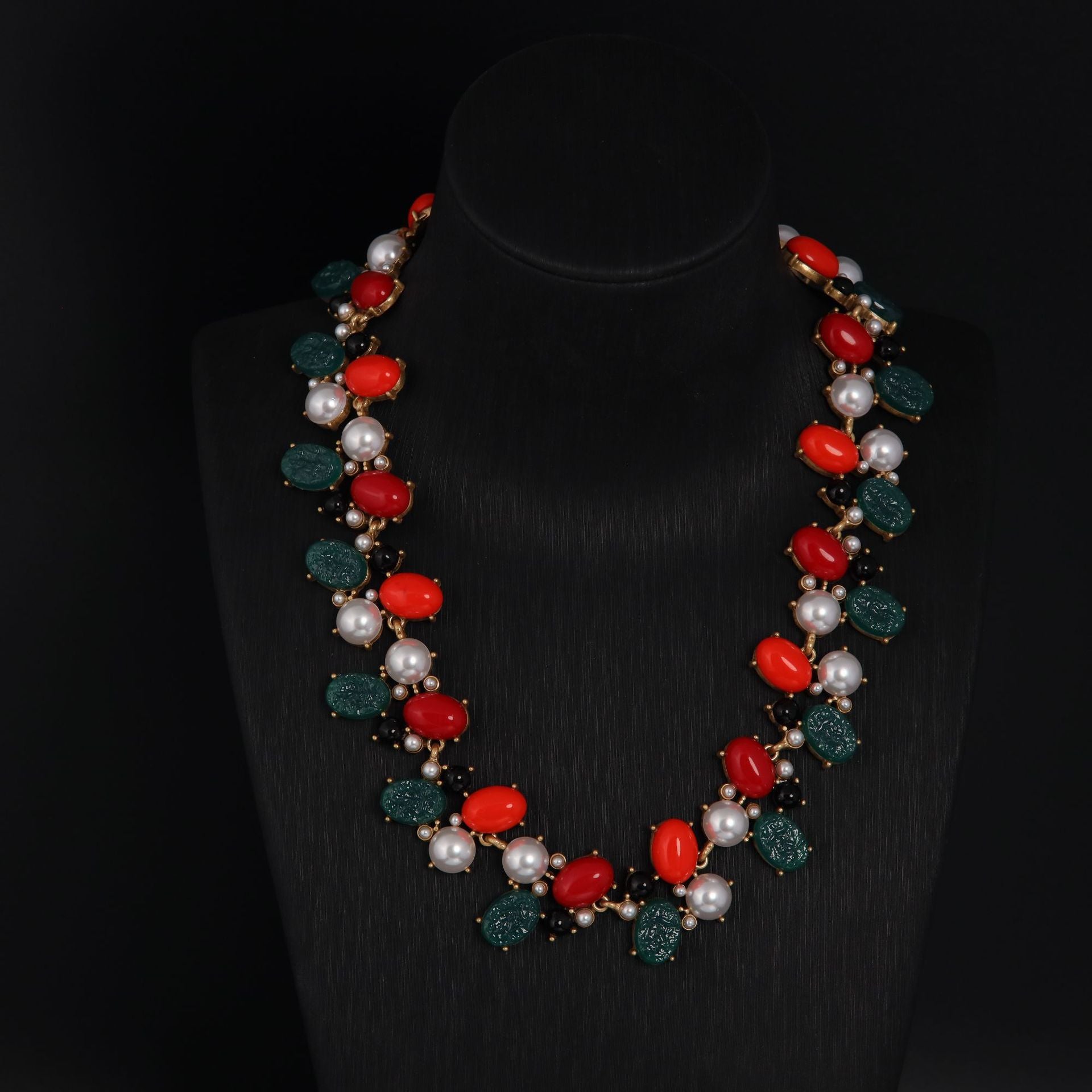 Discover a rare expression of elegance with our Medieval Vintage High Fashion Personality Temperament Agate White Glazed Bead Green Engraved Resin Necklace. This striking necklace is available exclusively online, crafted in limited quantities for discerning women who seek a statement piece imbued with heritage and artistry.