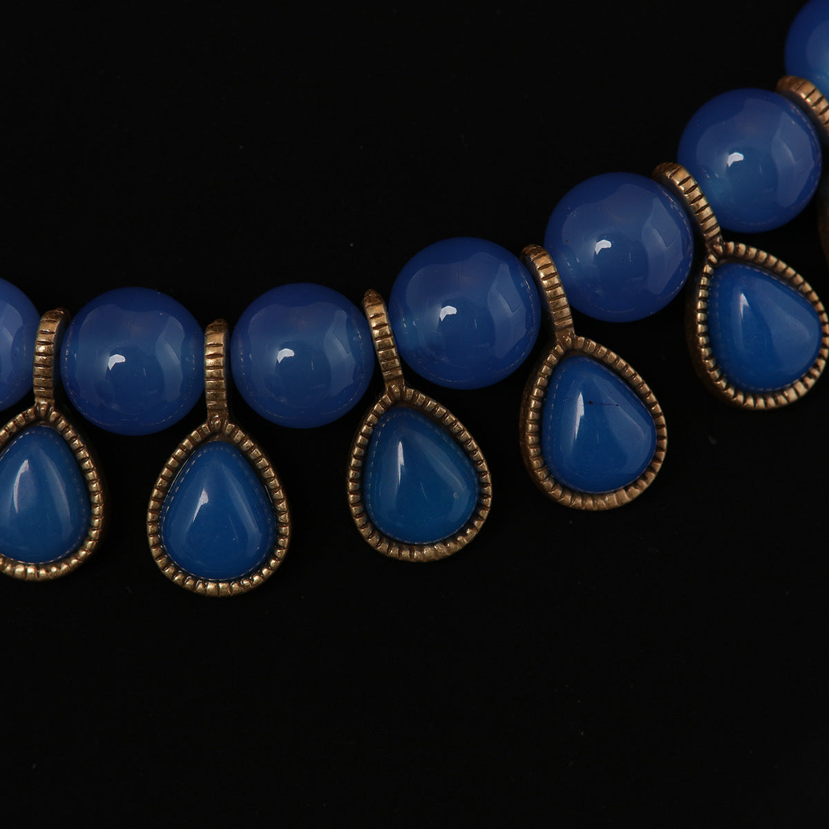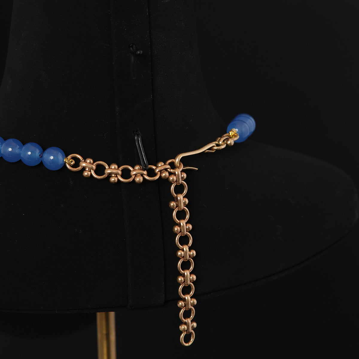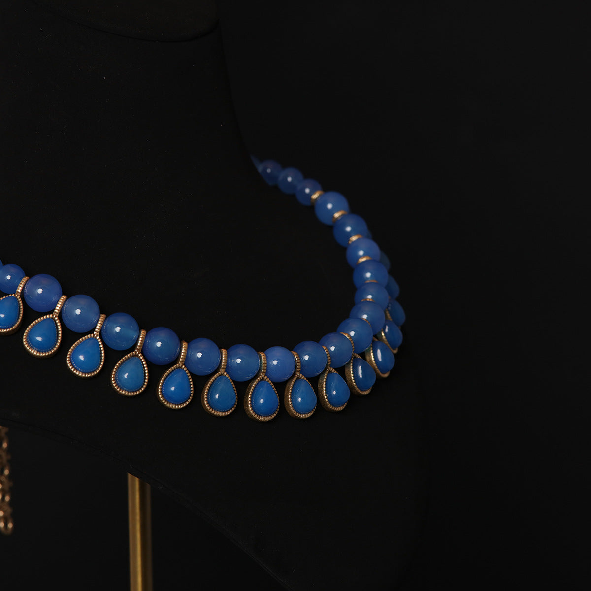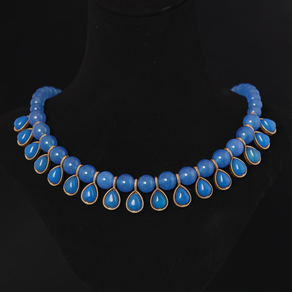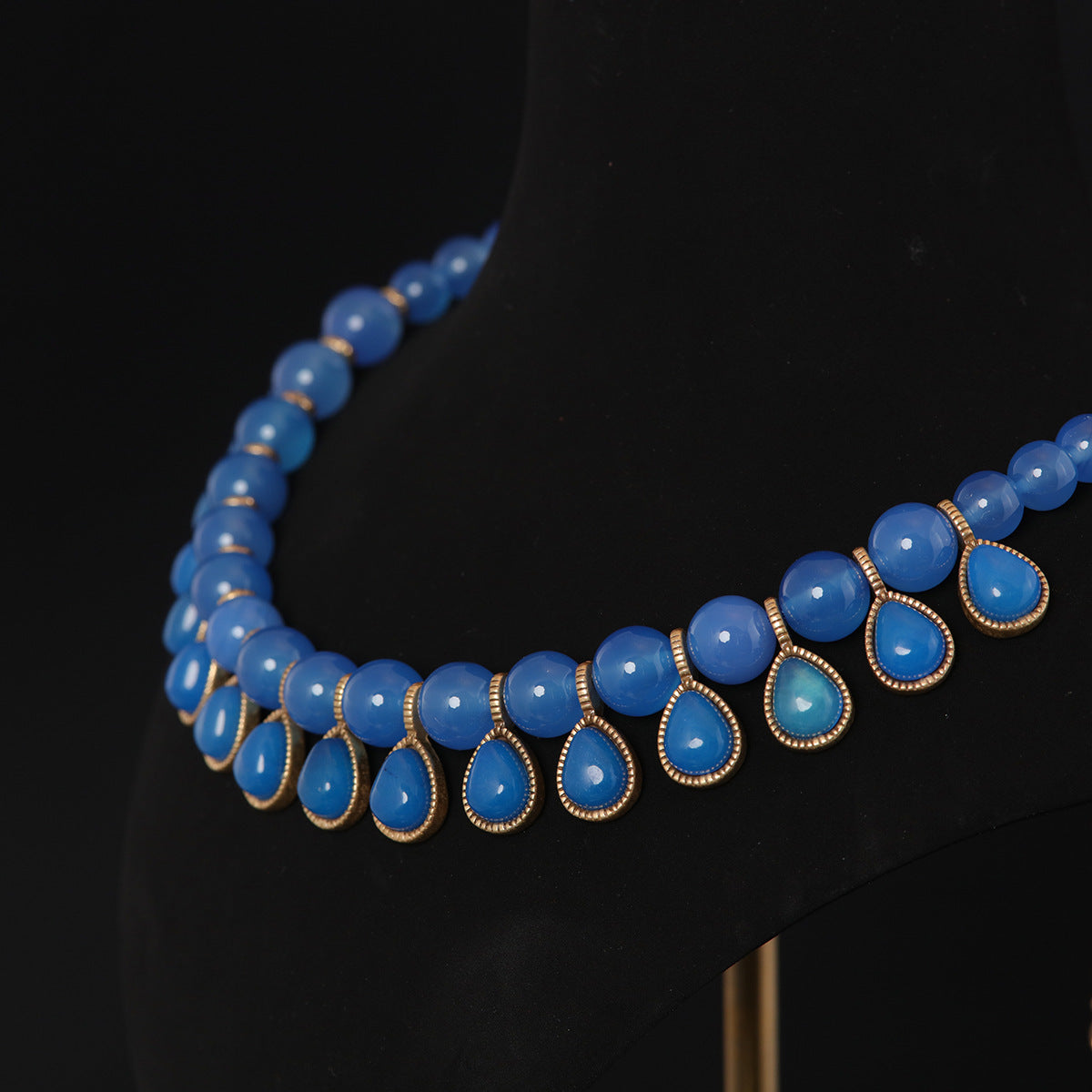 The necklace is expertly forged from premium copper alloy and finished with a distinctive old gold plating, capturing the rich luster of antique jewelry. Lustrous blue agate natural stone forms the dazzling centerpiece, admired for its unique patterns and coloration. Every element is thoughtfully selected for lasting quality and sophisticated allure.