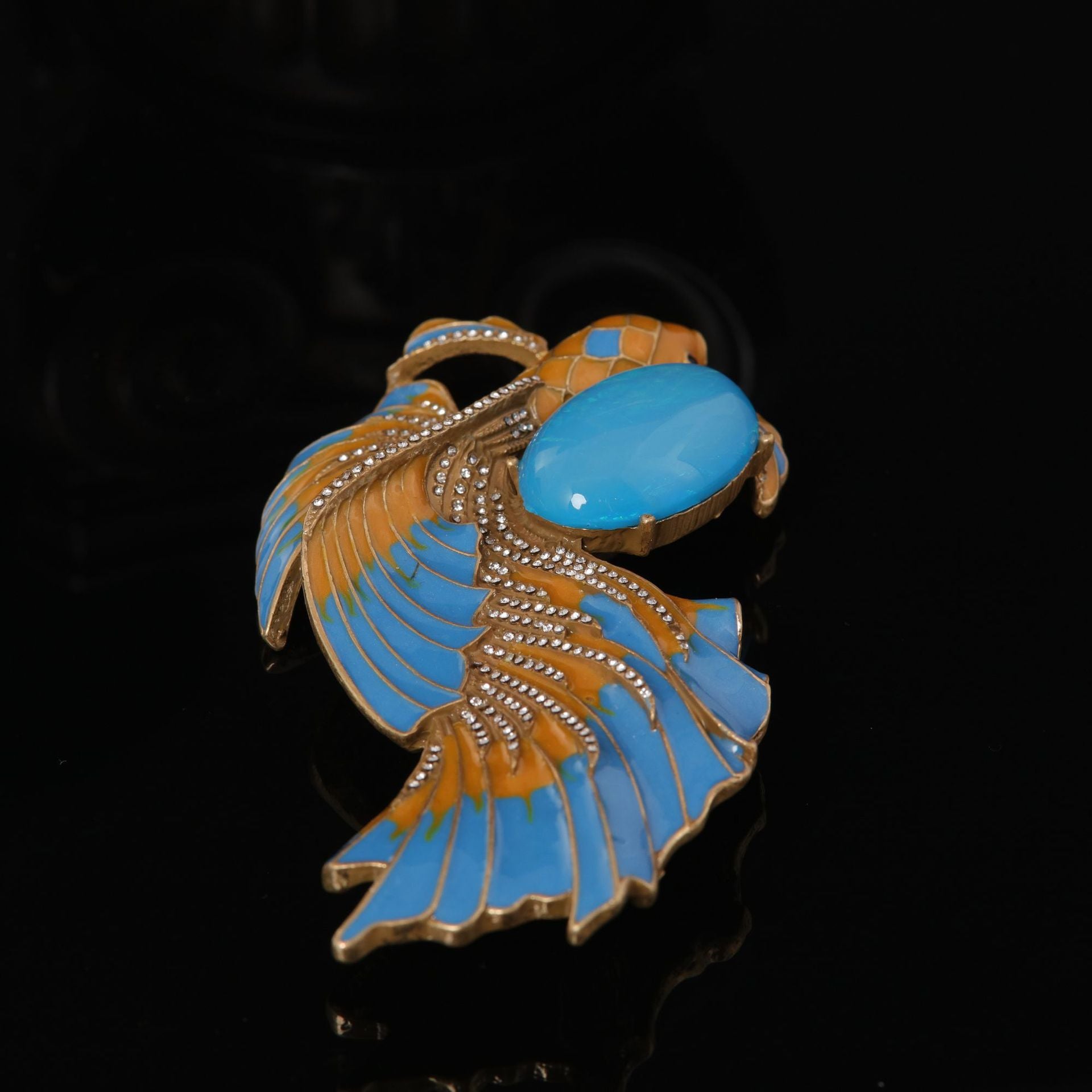 Elevate your accessory collection with this medieval vintage high sense European and American style temperament niche copper plated enamel drop glaze fish earrings brooch set. Designed for women who appreciate rare finds and timeless elegance, this set makes every outfit feel complete while expressing your distinctive individuality.