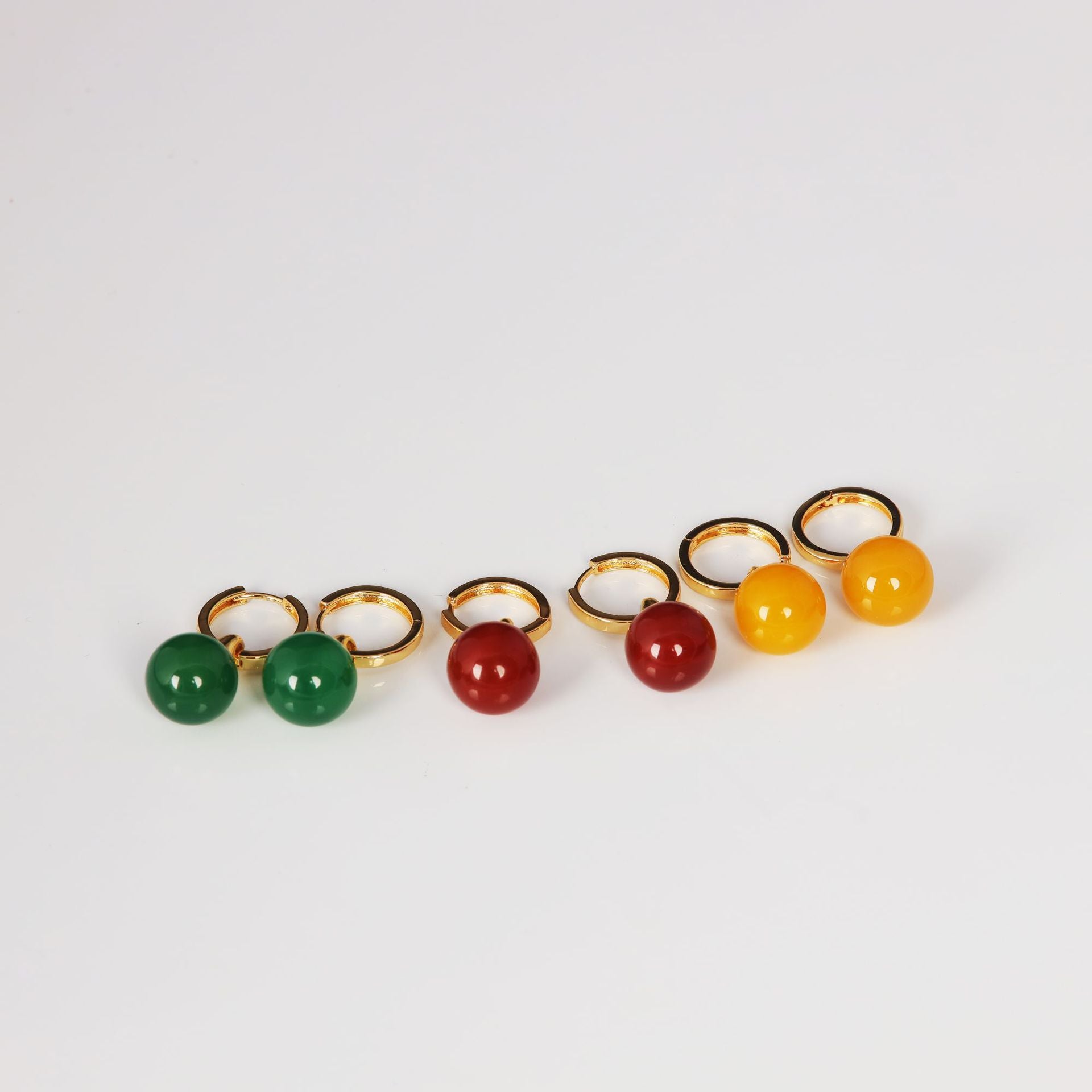 Only the finest materials are used in these earrings, featuring vibrant agate stones in rich retro red, yellow, or green shades. The base is a high-quality copper alloy, beautifully plated in genuine gold for lasting shine and luxurious appeal.