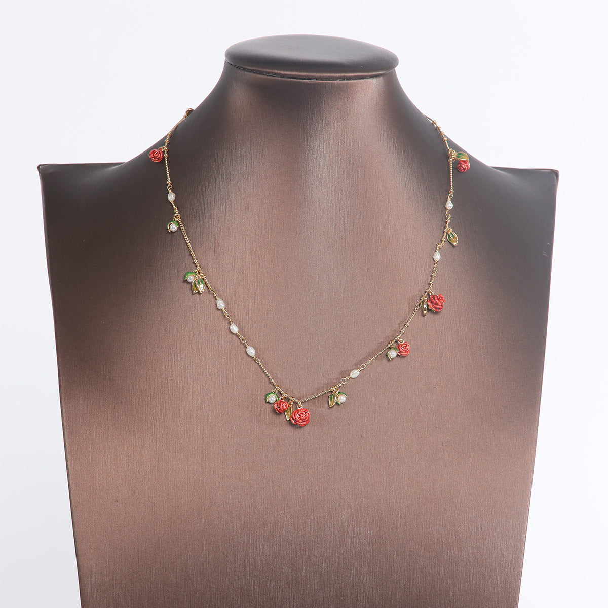 Presented as a limited edition accessory for Summer 2024, the Medieval vintage high sense fashion personality temperament design enamel rose necklace is available only in small quantities, ensuring each wearer enjoys genuine rarity.