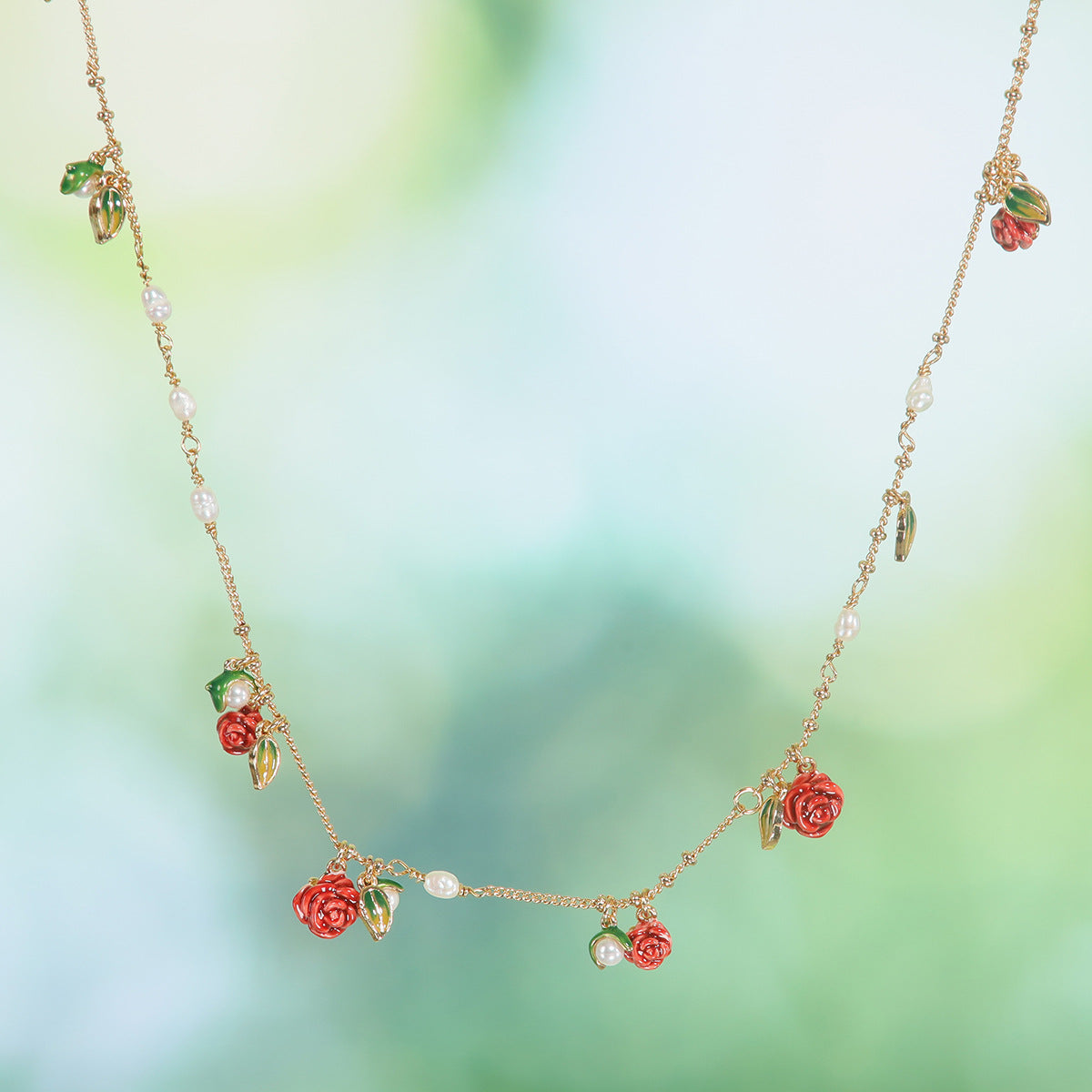 - Distinctive vintage rose necklace design combines medieval artistic influences with modern sophistication