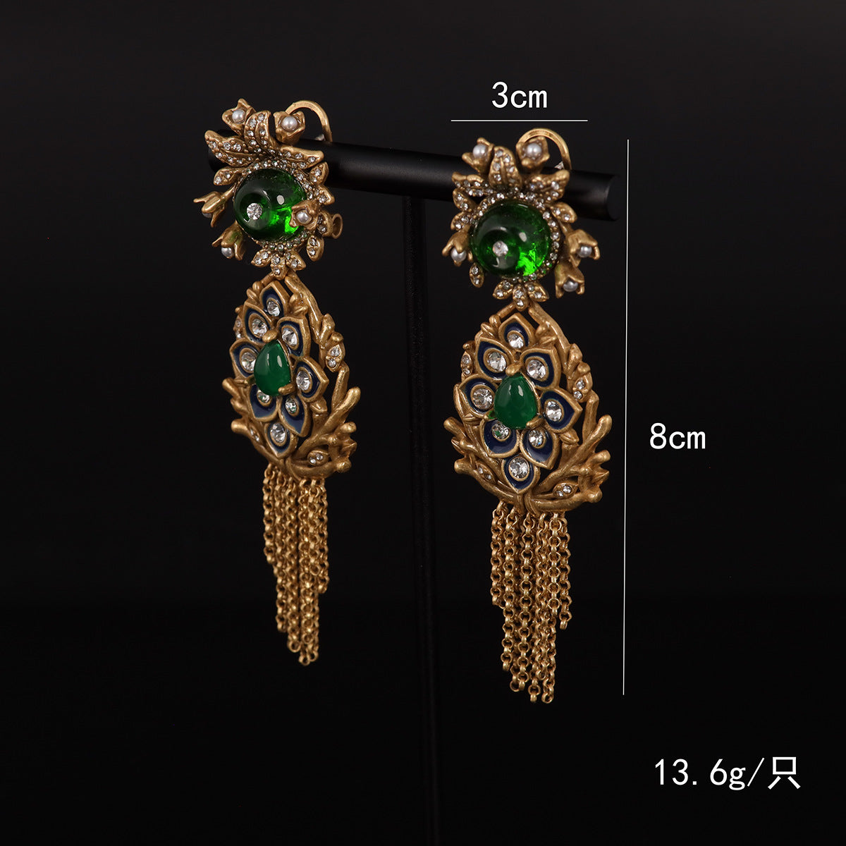 Embrace true luxury and make a bold statement with these medieval vintage high sense retro gold old green agate fringed earrings?aan essential addition for anyone who values exquisite design and premium craftsmanship.