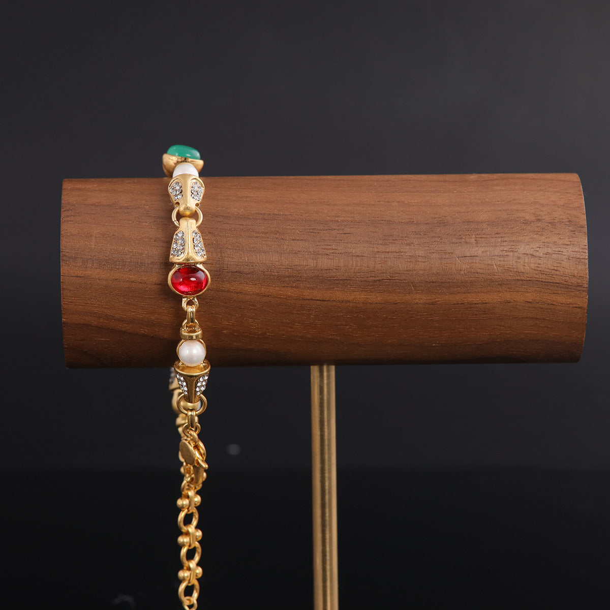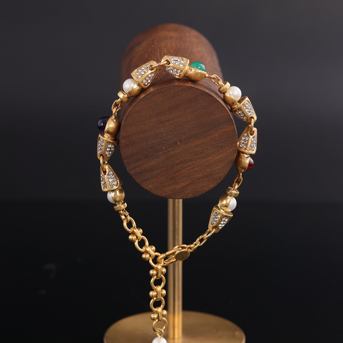 Experience the allure of distinction with our Medieval Vintage High Sense Retro Style Design Sense Temperament Versatile Niche Red Green Blue Agate Diamond Necklace¡ªa masterpiece for those who appreciate true exclusivity.